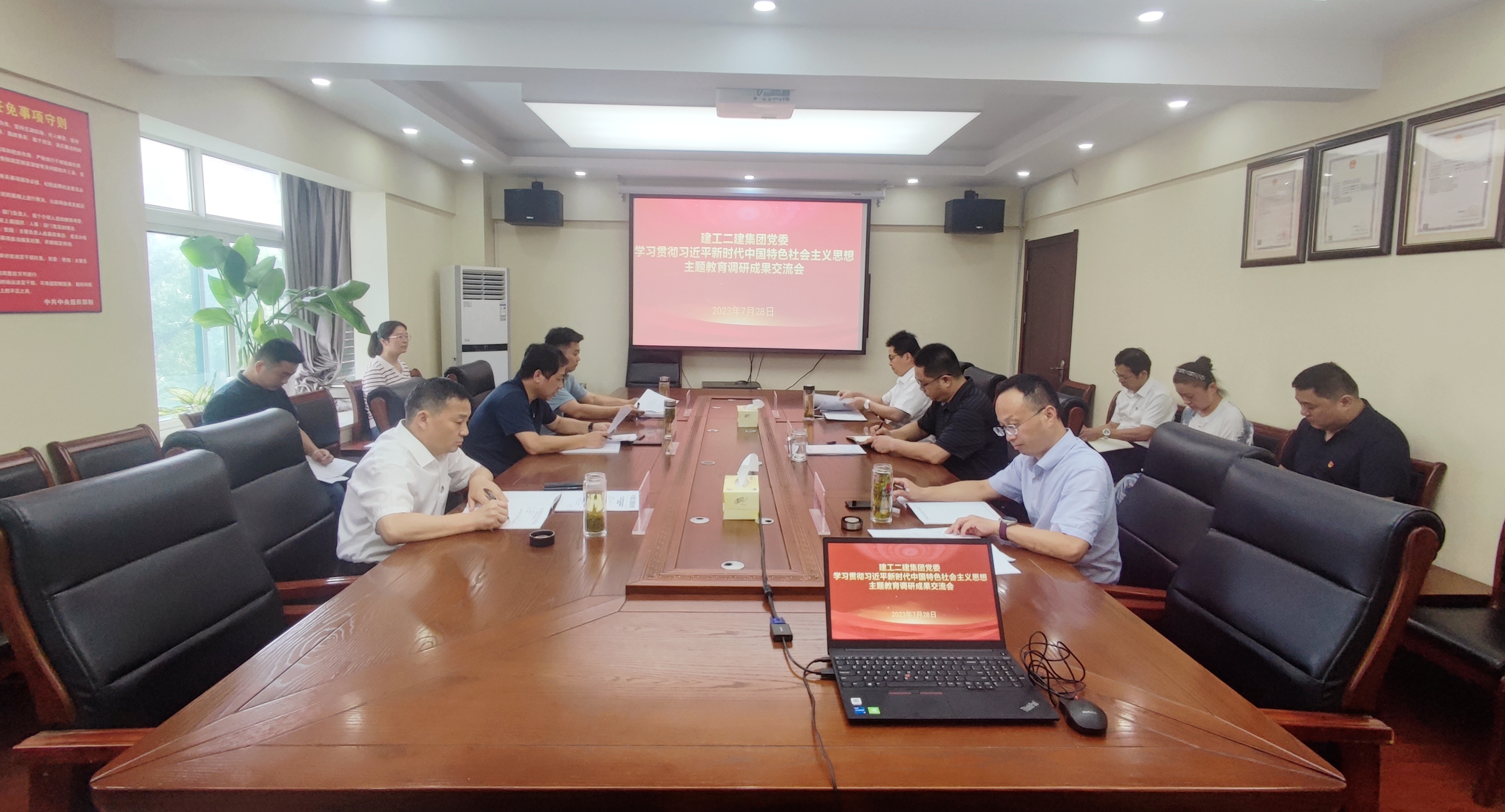 7月28日下午,建工二建集团党委召开学习贯彻习近平新时代中国特色社会主义思想主题教育调研成果交流会。公司在肥领导班子成员参会,党委副书记、总经理葛辉主持会议。