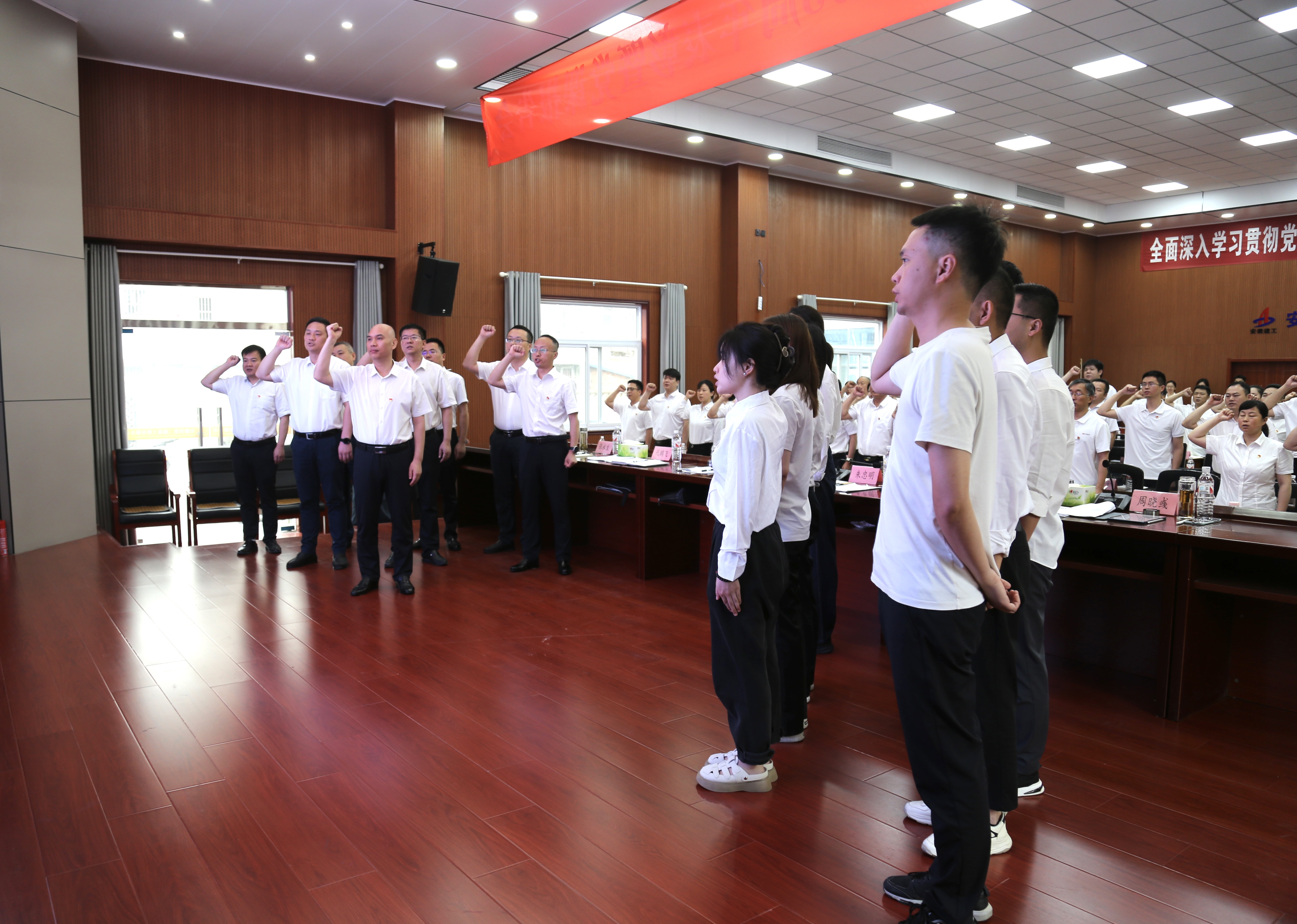 大会在庄严雄壮的国歌声中拉开帷幕。党委副书记、总经理陶良敬宣读2023年度公司党委“两优一先”表彰文件,总工程师吴彬宣读2023年度公司团委“两优一红”表彰文件。公司领导班子成员为受表彰的集体和个人颁发奖牌、荣誉证书,5名受表彰代表作交流发言。随后,在朱忠明的带领下,新党员进行入党宣誓,全体党员重温入党誓词。