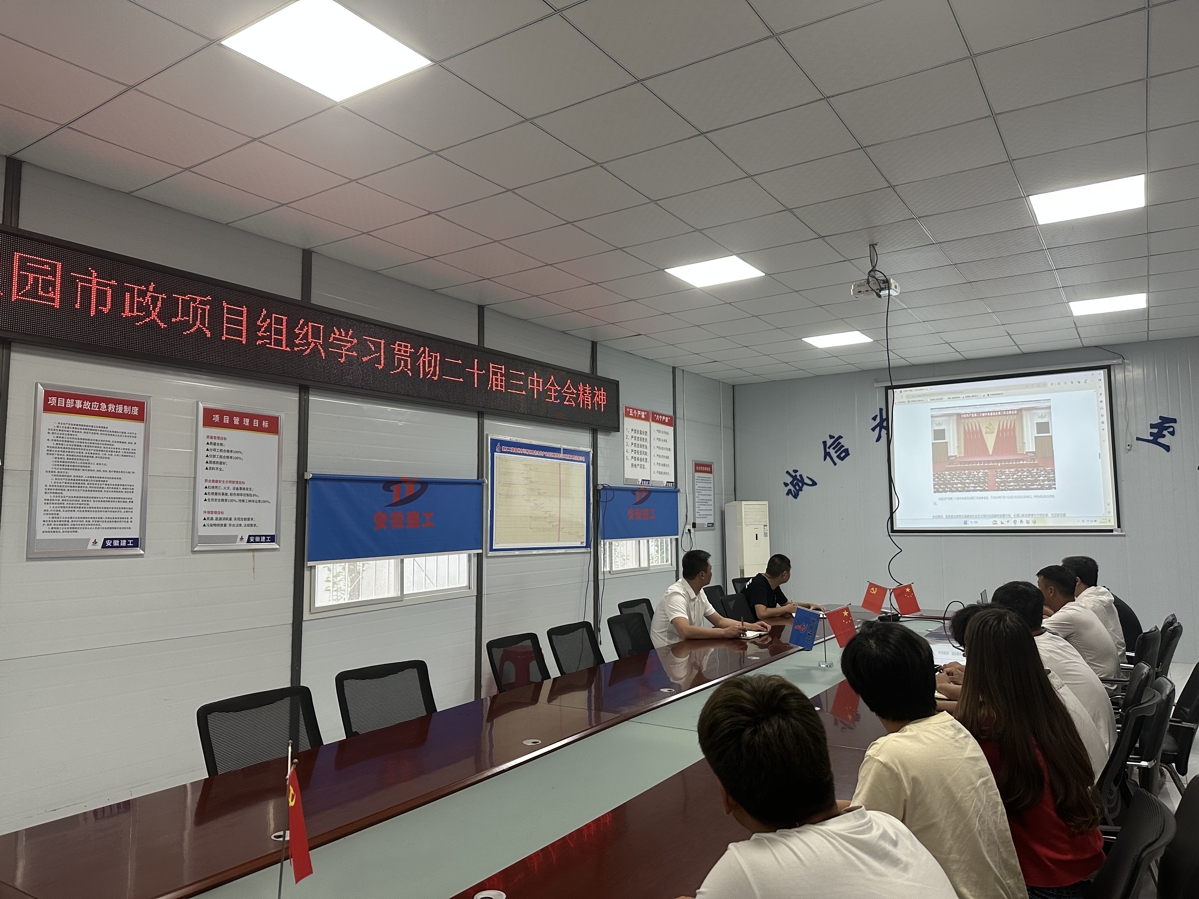 8月7日,宿徐现代产业园市政项目组织学习贯彻党的二十届三中全会精神。会上传达学习了《中共中央关于进一步全面深化改革 推进中国式现代化的决定》《党的二十届三中全会精神解读》等文件,并联系工作实际开展学习研讨。