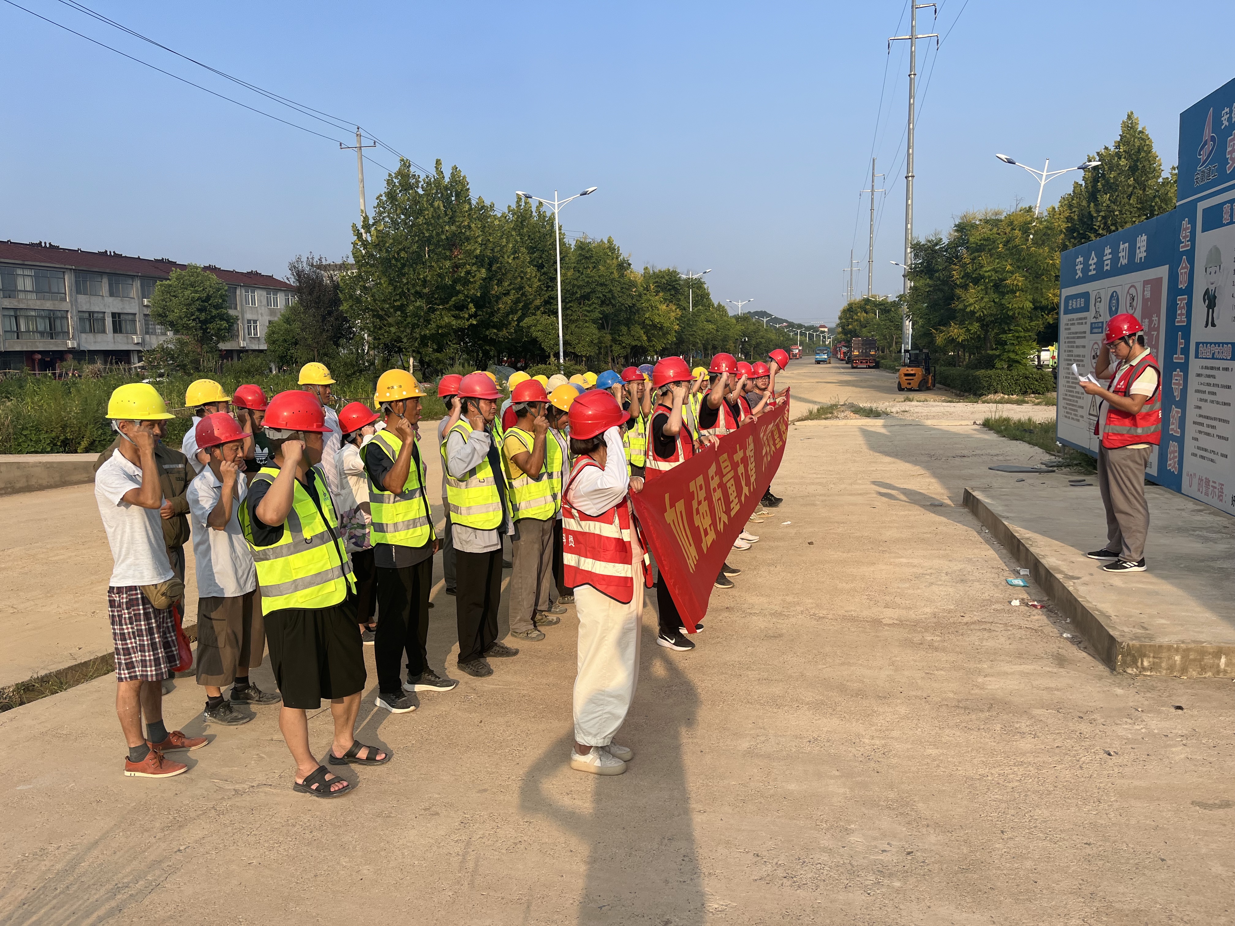 全体职工庄严宣誓,承诺严格遵守质量管理制度,认真履行职责,确保工程质量。随后的签字仪式上,大家在横幅上郑重签名,每一笔都代表对质量的坚守。