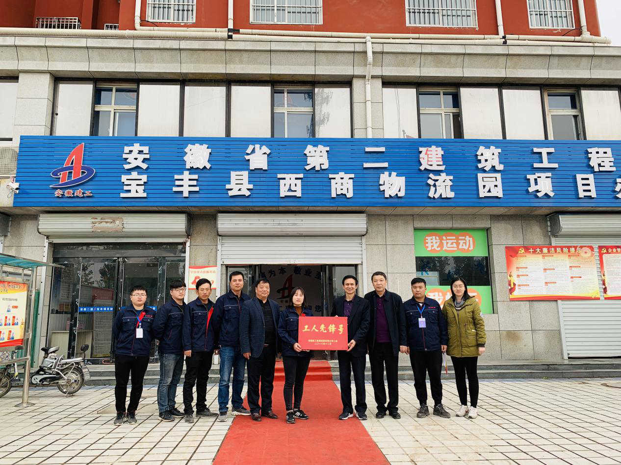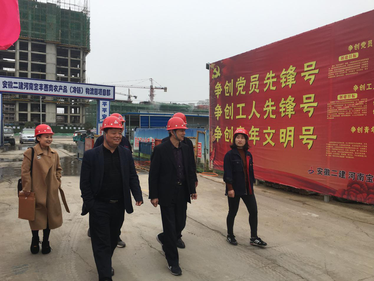 和煦的阳光温暖惬意,细柔的春风馨香满怀,4月10日,建工控股工会副主席吴晓伍、安徽二建公司副调研员李林、四分公司党支部书记董建民等一行5人,来到安徽二建河南宝丰西商农产品(冷链)物流园项目现场验收,并为项目“工人先锋号”授牌。