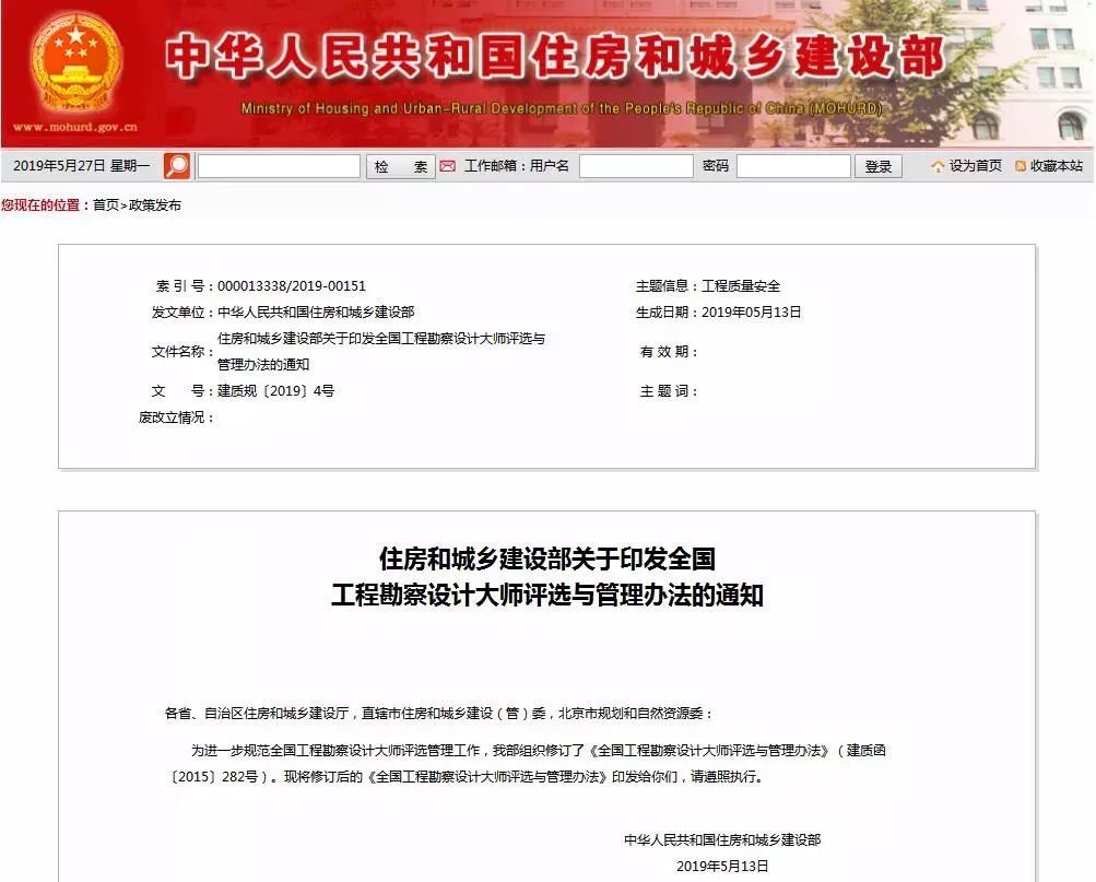 住房和城乡建设部近日发出通知,公布了新修订的《全国工程勘察设计大师评选与管理办法》,同时决定开展第九批全国工程勘察设计大师评选工作。