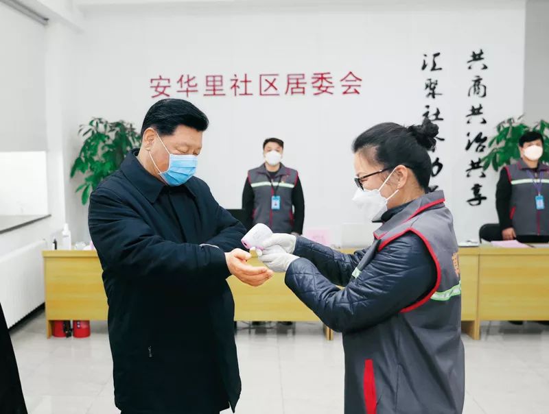 2月10日,中共中央总书记、国家主席、中央军委主席习近平在北京调研指导新冠肺炎疫情防控工作。这是习近平在朝阳区安贞街道安华里社区,了解基层一线疫情联防联控情况。新华社记者 庞兴雷 摄