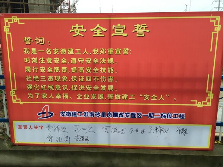 早上六点,清晨第一缕阳光刚刚洒下,项目部管理人员已在安全宣誓牌前排列整齐,面对庄严的宣誓牌,全体成员在项目技术负责人王欢的带领下,右手握拳置于面庞,郑重地齐声宣读誓词:我是一名bevictor伟德官网人,我郑重宣誓:时刻注意安全,遵守安全法规;履行安全职责,提高安全技能;杜绝三违现象,保证四不伤害;强化红线意识,促进安全发展;为了家人幸福,企业发展,誓做建工“安全人”。随后,项目部全体成员在项目经理费祥琪的带领下,陆续在宣誓牌上签下了自己的名字,表明自己时刻谨记安全宣誓内容,坚持安全生产的决心。