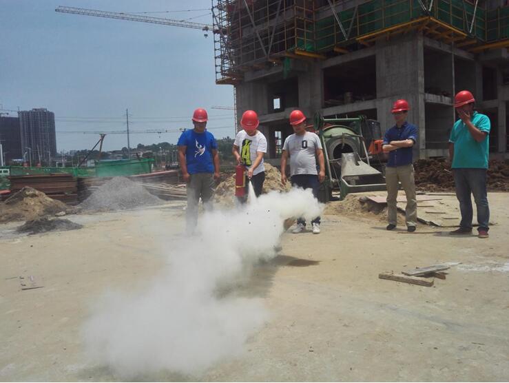 安全宣誓仪式结束后,费经理部署了应急救援预案演练活动。在总指挥王欢的带领下,按照项目部应急预案内容,依次模拟了火灾、触电等事故的演练。全体成员服从指挥、团结一致、协调分工,出色的完成了各项应急救援演练内容,不仅进一步熟悉了应急救援方案,提高了对安全事故的反应速度,更进一步清楚了安全事故发生的突然性,提高了自身的警觉性。