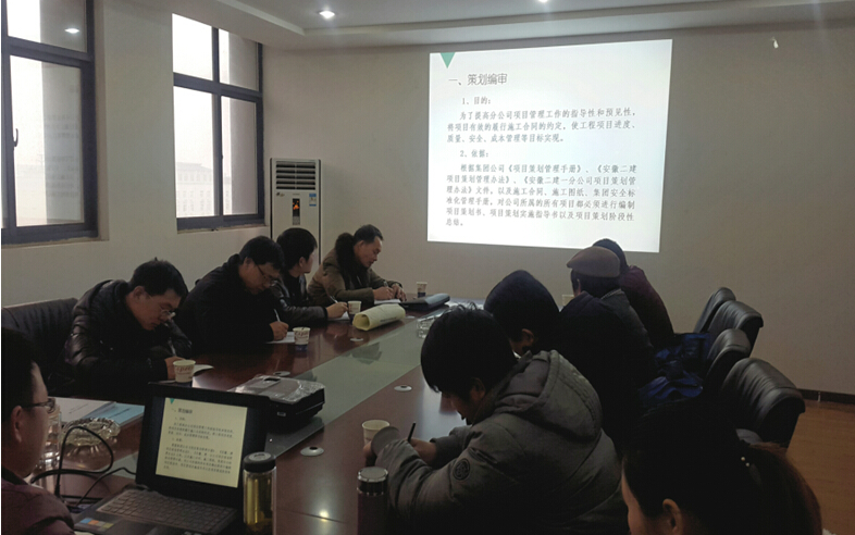 会议主要通过ppt形式就策划编审、施组、方案编审、项目技术质量考核、新开工项目告知等内容进行解读,集中学习了公司及分公司项目管理、质量控制、重难点攻关、冬季施工等相关文件。