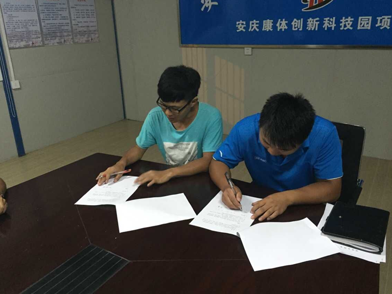 日前,第三分公司承建的安庆临港经济开发区创新产业园(标准化厂房)项目部,由于项目新员工较多,为了引导新员工在岗位上更好的学习,帮助新员工在岗位上更快的成才,培育年轻岗位能手,提升项目整体素质和业务水平,经项目领导班子讨论决定,在项目内部开展“导师带徒”活动,6位项目主要骨干分别与13位实习生签订了“导师带徒”协议。