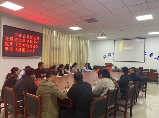 为认真贯彻落实习近平总书记在中央党史学习教育动员大会上的重要讲话精神,进一步深入贯彻公司党委关于开展党史学习教育的文件精神。二分公司党支部开展党史学习教育活动,组织党员和干部职工观看电影《长征》及纪录片《信仰的力量》节选《祖国至上》。