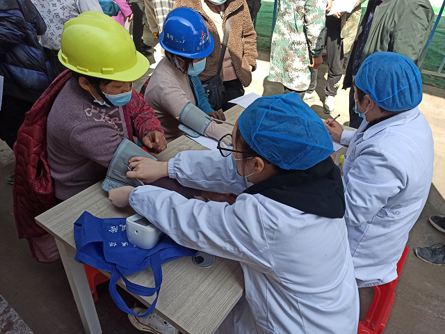 体检过程中,项目部管理人员协助医护人员维护现场秩序、登记信息、协助体检,保障了现场体检工作的有序开展。现场医护人员为工友们测量身高、体重、血压、心率等多项身体指标,询问他们的身体健康状况、生活作息规律,为他们讲解了工作中注意事项和疾病预防措施。