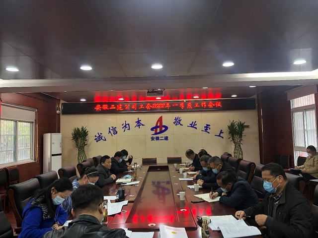 3月25日上午,安徽二建公司工会2022年一季度工作会议在公司一楼会议室召开。公司党委副书记、董事、工会主席王军出席会议并讲话,工会副主席、女工委主任王俊主持会议,公司工会全体人员、所属各单位工会主席和综合办负责工会工作人员参会。