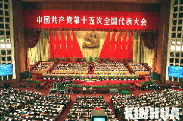 这次大会是在我国改革开放和社会主义现代化建设发展的关键时刻召开的,是在世纪之交,承前启后,继往开来,保证全党继承邓小平同志遗志,坚定不移地沿着十一届三中全会以来正确路线胜利前进的大会。五年前,党的十四大郑重地把邓小平建设有中国特色社会主义的理论写在了中国共产党的旗帜上,并向全世界庄严宣告:我国经济体制改革的目标是建立社会主义市场经济体制。五年来,以江泽民同志为核心的党中央全面贯彻党的基本理论和基本路线,认真实施党的十四大作出的各项重要决策,贯彻“抓住机遇,深化改革,扩大开放,促进发展,保持稳定”的基本方针,使我们党和国家经受住了新的考验,把改革开放和社会主义现代化建设推进到一个新的历史阶段,各个领域都取得了举世瞩目的巨大成就。社会主义市场经济体制的框架加速构建,国民经济持续、快速、健康发展,社会生产力、综合国力、人民生活水平又上了一个新台阶。党的建设、廉政建设、民主法制建设和社会主义精神文明建设大大加强。文化、科技、教育事业取得新的成绩。军队建设有了新的进展,国防更加巩固。外交工作成绩卓著,我国的国际地位日益提高。香港顺利回归,祖国统一大业迈出了历史性的一步。正是在建设有中国特色社会主义的伟大事业欣欣向荣,展现出更加光明前景的时刻,中国共产党召开了党的第十五次全国代表大会。
